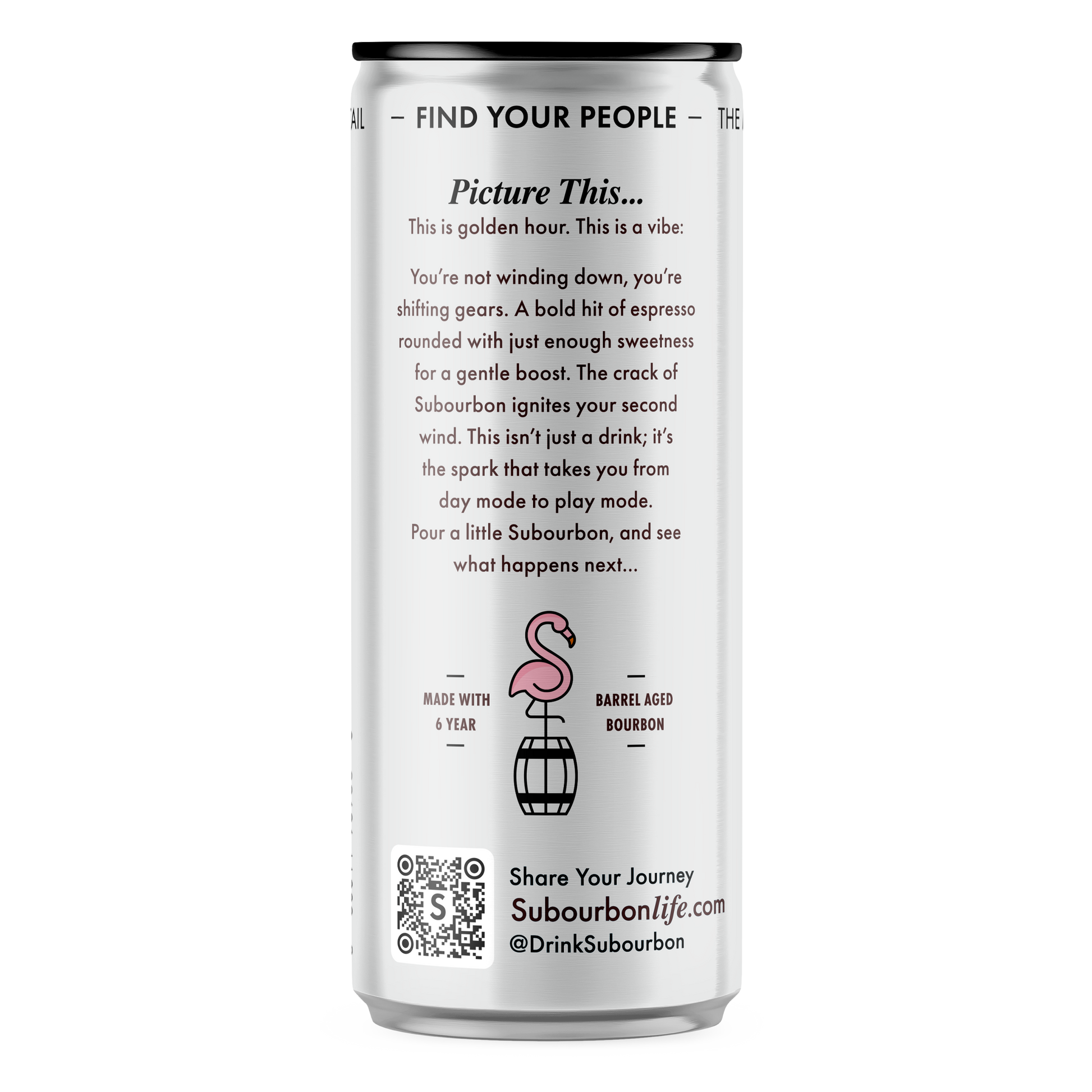 You're not winding down, you're shifting gears. A bold hit of espresso rounded with just enough sweetness for a gentle boost. The crack of Subourbon ignites your second wind. This isn't just a drink; it's the spark that takes you from day mode to play mode.
