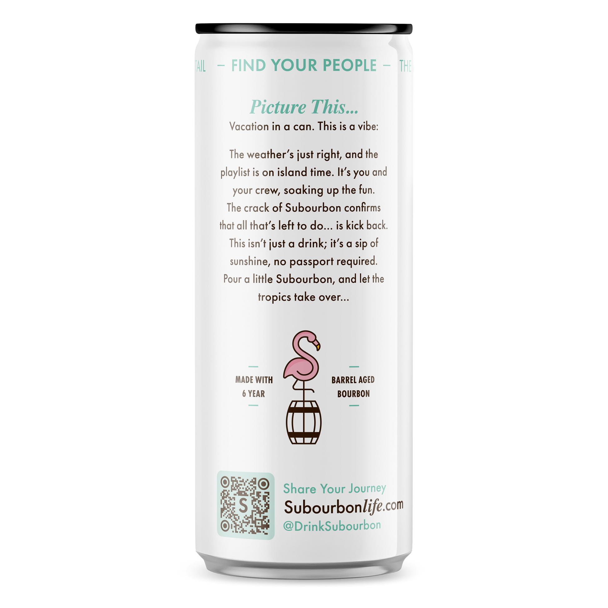 The weather's just right, and the playlist is on island time. It's you and your crew, soaking up the fun. The crack of Subourbon confirms that all that's left to do... is kick back. This isn't just a drink; it's a sip of sunshine, no passport required.